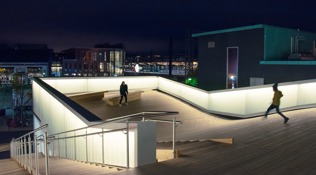 Prosjektet Skilpaddeparken er igangsatt av Bymiljøetaten i Oslo kommune og er en del av Oslo sør-satsingen i Bydel Søndre Nordstrand. Etableringen av den nye møteplassen startet med en spennende medvirkningsprosess med nærmiljøvandring og design- og lysverksted med gerilja-lighting. Integrert belysning i nyetablerte strukturer rammer inn og synliggjør sentrale møteplasser. Lyssatte gangveier og aktivitetssoner bidrar til å innlemme nye uteområder til allerede etablerte omgivelser. Lysdesign: Light Bureau m.fl.