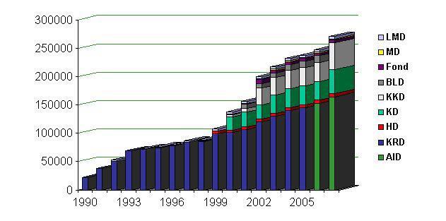 38 I Kommunaldepartementets St. prp. nr 1 (1992-1993) uttales det i forbindelse med overføringen av disse ord-ningene at ”De ulike fagstatsrådene er fortsatt ansvarlig for eventuelle bevilgningsøkninger på sine felt” (side 59). I praksis har det vist seg at budsjettøkningen var minimal i perioden 1993-1998 på de områdene som faglig sett lå under andre enn Kommunaldepartementet.