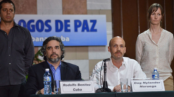 Norge var sammen med Cuba garantistland for fredsprosessen mellom Colombias regjering og FARC-EP. Forhandlingene ble lansert i Oslo i oktober 2012 etter forutgående hemmelige forhandlinger mellom partene om en rammeavtale for prosessen. En endelig fredsavtale ble undertegnet i november 2016 etter fire års forhandlinger i Havanna, Cuba.