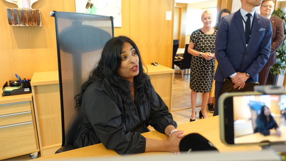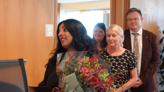 Lubna Jaffery under nøkkeloverrekkelsen 28. juni 2023. Govva: KUD