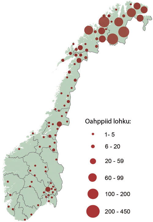 Gáldu: Bargojoavkku raporta: Stáhta sámi joatkkaskuvllat – boahtteáiggi hálddašanovddasvástádusa guorahallan. Geassemánnu 2007. Raporttas earuhit gaskal ollesáiggi kurssiid (195) ja oasseáiggi kurssiid ohppiid (26).